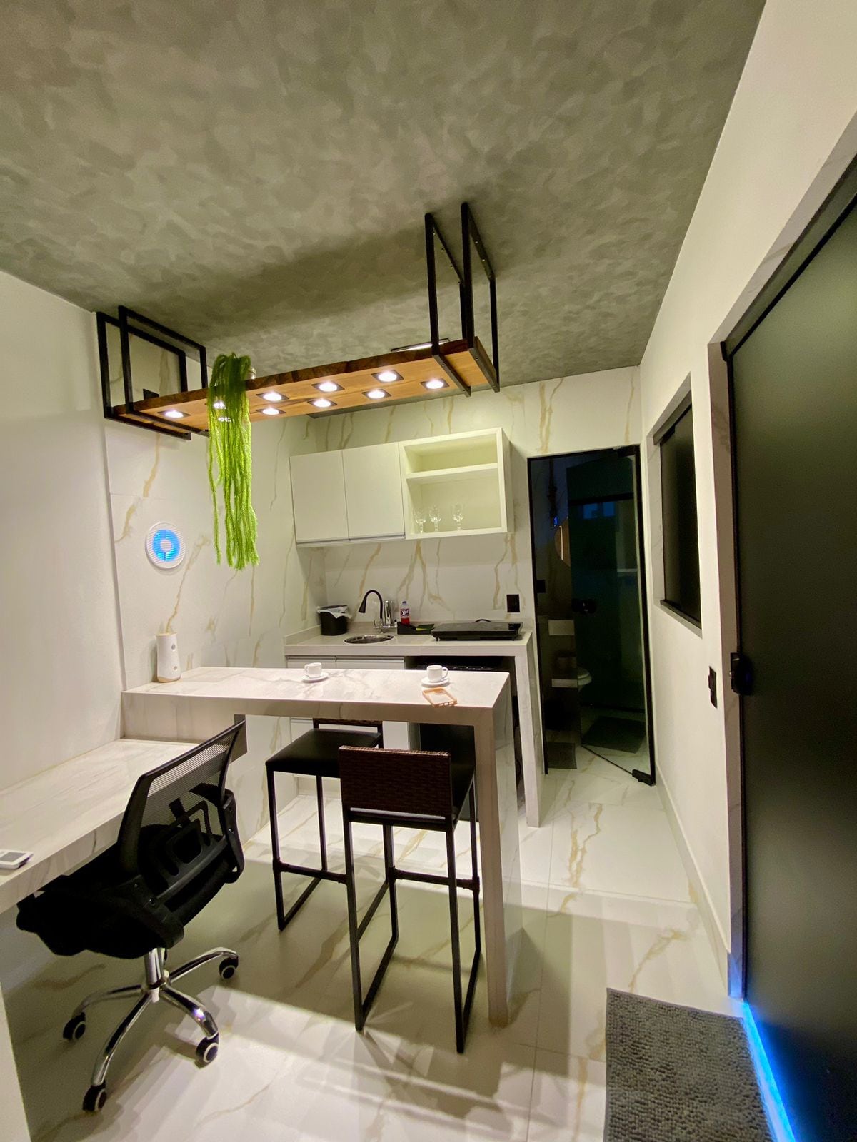 loft impecablemente cuidadoso, en la planta superior, encontrarás una habitación equipada con una cama tamaño queen, un amplio armario de 6 puertas y aire acondicionado, aire acondicionado en todo el loft. En la planta baja, el entorno integrado ofrece una habitación con sofá de dos plazas, además de una cocina completa, equipada para todas tus necesidades, un baño acogedor, lavadora, espacio pensando en proporcionar bienestar, ya sea para una estancia corta o una temporada prolongada.