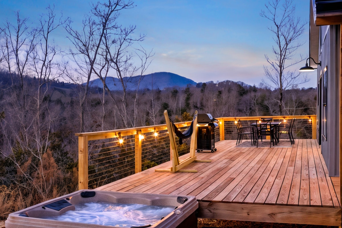 ¡The Honey Bee! Escápate a esta acogedora cabaña de 2 dormitorios y 2 baños en 30 acres en las montañas del norte de Georgia. Disfruta de impresionantes vistas a Cedar Mountain con servicios como jacuzzi, chimenea, hamacas y una ruta de senderismo privada. Relájate en la terraza o en el porche cubierto, perfecto para cenar y hacer barbacoas. En el interior, encontrarás una cocina totalmente equipada, camas tamaño king, una acogedora sala de estar y televisores inteligentes con conexión wifi gratuita. Cerca de bodegas, senderismo, tubing y la histórica Dahlonega, ¡esta es tu escapada perfecta para la aventura y la relajación!