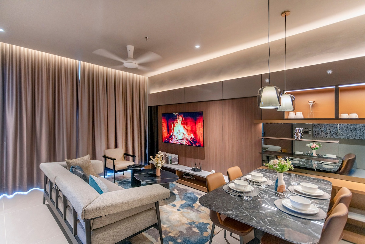 Disfruta de unas impresionantes vistas a la montaña y a las nubes desde tu suite privada en Antara Genting. Justo encima del centro comercial Antara con acceso por puente a SkyAvenue. Esta moderna suite de 1 dormitorio tiene capacidad para 2–4 personas y cuenta con TV box, bañera con bañera y burbujeador, dispensador de agua fría y caliente y cocina americana completa. Disfruta de más de 50 instalaciones adecuadas para un viaje en familia en este apartamento con servicios.