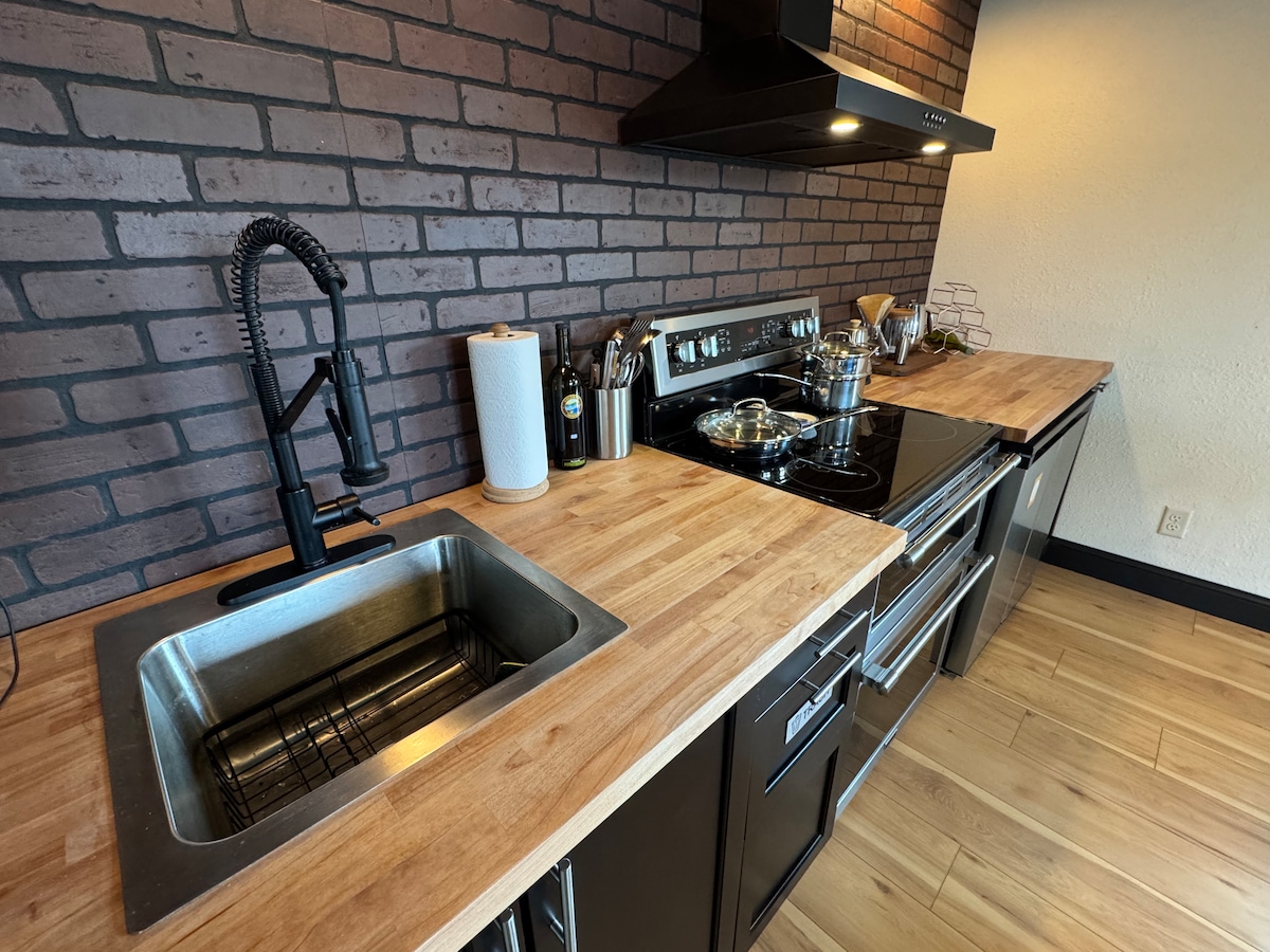 Relax in this quiet 2 bedroom basement studio apartment attached to our home, private entrance from garage. Fully furnished kitchenette everything needed for cooking with a two burner cooktop and toaster oven/air fryer. Queen bed with adjustable positioning and massaging controls in one bedroom and queen size bed in second bedroom. Televisions in each bedroom. Beautiful bathroom with extra lighting and double sinks. Washer dryer combo. Long term stay discounts available.