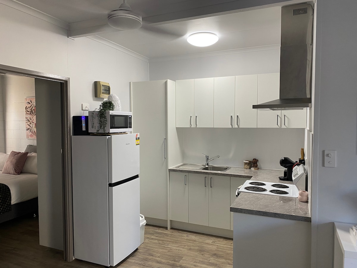 Disfruta de una experiencia elegante en esta unidad céntrica. Renovado con buen gusto de arriba a abajo, ofrece una escapada tranquila. El Prickly Pad tiene una sala de estar, 1 cama tamaño king y 2 camas individuales con ropa de cama de calidad. Un baño totalmente renovado, lavandería con lavadora y secadora. Una cocina pequeña con nevera, freidora de aire y sartén eléctrica. Convenientemente ubicado a 4 minutos en coche del aeropuerto de Mackay y del hospital base de Mackay. A poca distancia a pie del supermercado Coles y de las tiendas.