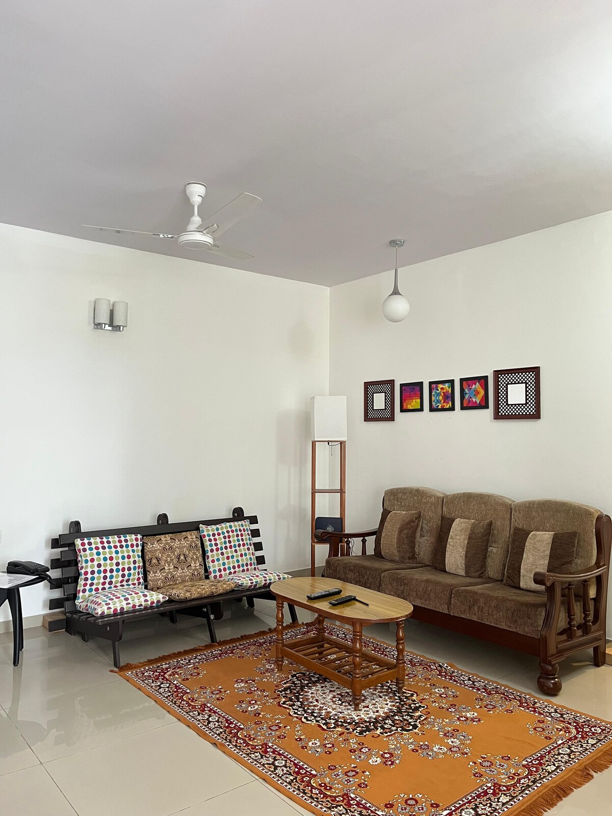 Welcome to a spacious, well-ventilated, and immaculate residence designed for peace & comfort. Not suited for parties with music. 📍 Connectivity Nagasandra Metro Station is just a 2-minute walk away—your best bet for traffic-free travel to the City Center. BIEC (Exhibition Centre) is only 3.3 km away Space Layout MBR: King Bed + Attached Bathroom. BR 2: Double Bed. BR 3: Two Single Beds. Common Areas: Living room, dining area, balcony & a common bathroom.