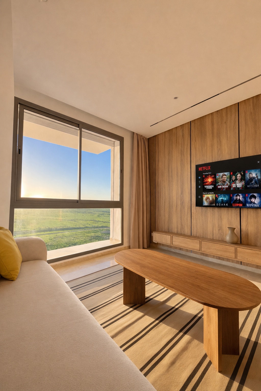 🌟 Departamento de lujo – Residencia Meliber 📍 A pocos pasos de la Mezquita Hassan II 🛏️ 3 habitaciones + 🎮 habitación para videojuegos 🛋️ Sala de estar luminosa con terraza y vistas a Casablanca 🍽️ Cocina independiente bien equipada 🪑 Mesa de comedor para 4 personas 💻 Espacio de trabajo 🎱 Mesa de billar 📺 Smart TV de 65” 📶 Wifi rápido 🔐 Entrada al departamento – cerradura inteligente ✨ Ideal para familias, amigos y negocios
