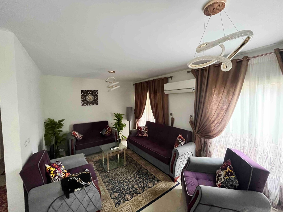 Un APARTAMENTO ENTERO con un jardín trasero situado en una zona hermosa y verde en una comunidad pacíficamente integrada que satisface todas las necesidades de los residentes. Las habitaciones están recién amuebladas, con aire acondicionado, TV inteligente y todas las comodidades que puedas necesitar, superLIMPIO y TRANQUILO. El apartamento está a 25 minutos del Aeropuerto Internacional de El Cairo. Cafeterías, restaurantes, supermercados y farmacias están cerca. Calidad de hotel con comodidad hogareña ofrecida a un PRECIO RAZONABLE.