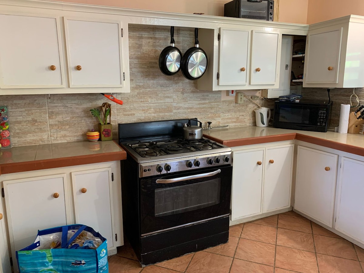 Relájate en este acogedor hogar lejos de casa. La cocina recientemente renovada tiene un acabado moderno y un acogedor rincón para comer. La propiedad incluye: aire acondicionado, 3 dormitorios, 2 baños, nevera, encimera eléctrica, microondas, hervidor de agua, ollas, utensilios, ropa de cama, calentador de agua, televisión, cable e internet. La playa, las tiendas y los restaurantes están a solo unos minutos, pero la zona se siente tranquila y aislada. Dé un paseo temprano por la mañana, disfrute de las delicias locales cercanas y luego regrese a tomar un café en el patio trasero.