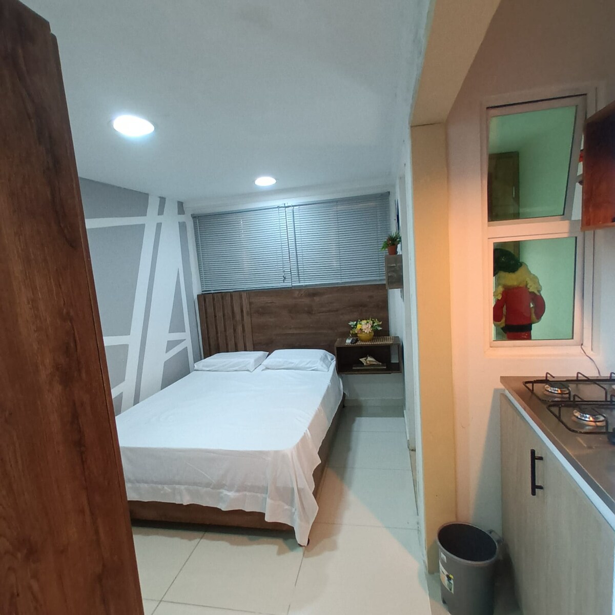 Especialmente diseñado con el máximo confort, alejado de ruidos y con pequeños detalles que te sorprenderán. Con cocineta pequeña(Cafetera, Estufa, HornoTostador, lavaplatos y refrigerador mediano. Netflix y SmartTv disponible. Wi-fi 500MB y conexión Ethernet con cable!!! Ten en cuenta que El Ministerio de Turismo nos pide que registremos datos como #de identificación, ciudad de residencia y procedencia, motivo de viaje, sin esto no podré recibirte. Esperamos que puedas disfrutar esta estadía!