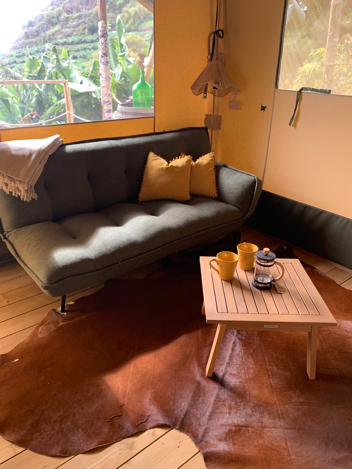 Banana Garden Glamping Madeira ofrece tiendas de campaña románticas y cómodas con baños únicos. Ubicada en una exuberante plantación de plátanos en la soleada costa sur de Madeira, tu tienda de campaña de lujo ofrece una escapada increíble a la naturaleza para dos, sin renunciar a la comodidad ni al estilo. Nuestro sitio combina vistas al mar y a la montaña, así como un entorno tranquilo para una estancia única. Ya sea que estés buscando una escapada romántica, una desintoxicación digital o simplemente una nueva forma de experimentar Madeira, aquí lo tienes.