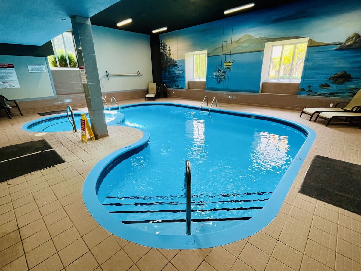 Excelente lugar para hospedarse, frente al lago Memphremagog, departamento totalmente renovado en el primer piso, sin escaleras, a un paso de todas las comodidades que le permitirán disfrutar de cada minuto de su escapada. Ubicación perfecta, a 7 minutos a pie del centro de la ciudad, con acceso a restaurantes, bares y cafeterías, a 15 metros de las 2 piscinas (interior y exterior), sauna, spa, lago y gimnasio, y con acceso a parrillas, mesas de pícnic, cancha de voleibol y al puerto deportivo en verano. A poca distancia en auto de esquí y golf. (Orford) y Owlès Head