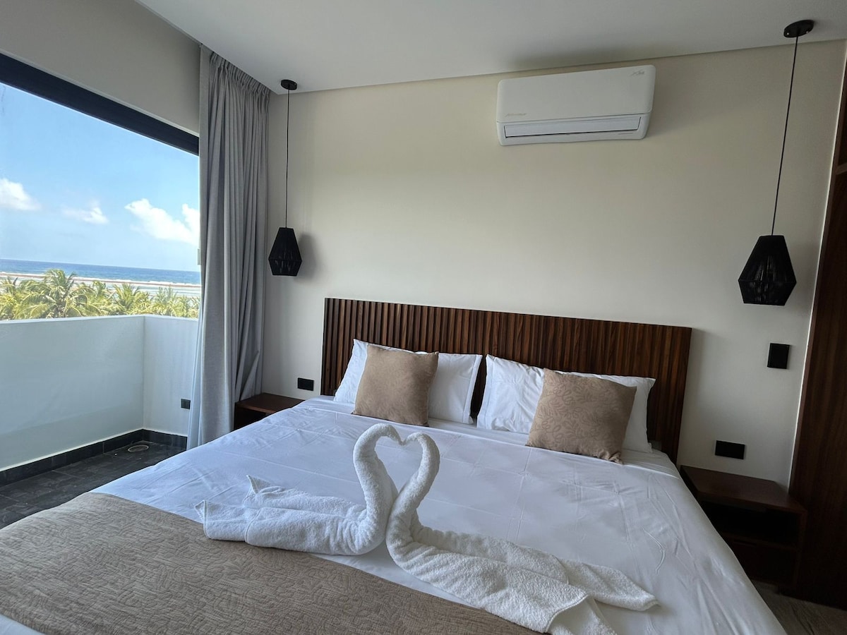 Disfruta un departamento cómodo y funcional en Mahahual, ideal para descansar y disfrutar unos días cerca del mar. Cuenta con cama amplia, cocina equipada, aire acondicionado, WiFi y un espacio abierto que brinda comodidad y buena iluminación natural durante todo el día. Desde el departamento podrás apreciar una vista parcial hacia el entorno natural y el mar. Además, tendrás acceso a las áreas comunes del condominio, perfectas para relajarte durante tu estancia.