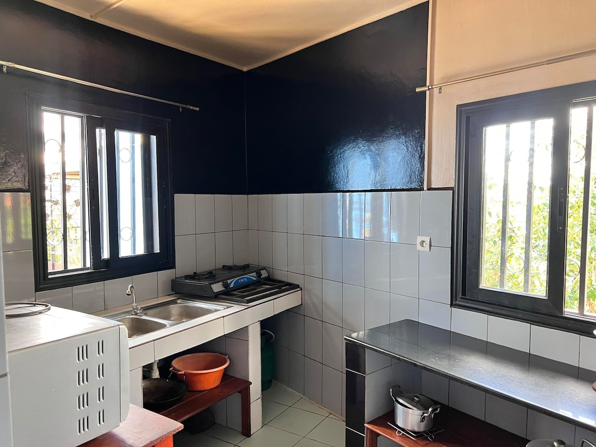 Découvrez la splendide villa Fy à Majunga, un véritable havre de paix ! Le logement est conçu pour vous offrir un séjour inoubliable. Vous trouverez tout le confort nécessaire pour vous détendre et profiter pleinement de vos vacances. Savourez des moments inoubliables en famille ou entre amis sur notre vaste terrasse, équipée d'un braséro pour des soirées chaleureuses. L'emplacement est tout simplement idyllique : à seulement 5 minutes à pied des plages de sable fin.