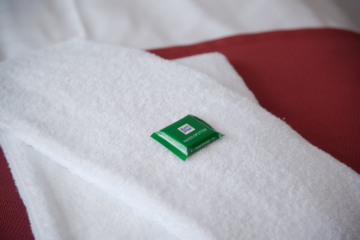 Unsere großzügigen Zimmer sind mit übergroßen Boxspringbetten ausgestattet, die für erholsamen Schlaf sorgen. Die hellen Tageslicht-Duschbäder bieten Komfort und Frische, während der große Flachbild-TV vielfältige Unterhaltungsmöglichkeiten bietet. Kostenloses W-Lan ermöglicht produktives Arbeiten oder entspannte Streaming-Abende. Zur Begrüßung gibt es eine Wasserflasche auf dem Zimmer. Täglicher Zimmerservice sorgt für zusätzlichen Komfort