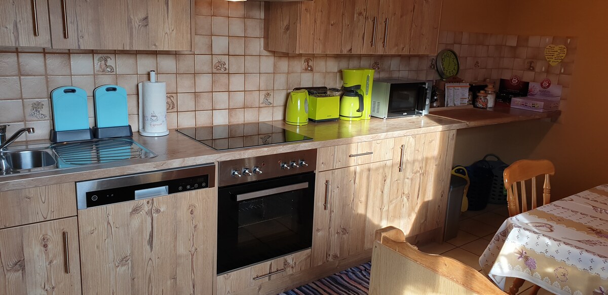 Homemade Apartment está lejos de ciudades ruidosas. No importa si viajas por negocios o simplemente te tomas unos días libres con tu familia, aquí encontrarás paz, tranquilidad y posiblemente te acerques mucho a la naturaleza. Construido en 2022, el apartamento de vacaciones tiene una cocina totalmente equipada, una sala de estar bellamente diseñada, un dormitorio con baño y una galería (altura máxima de la galería: 1,7 m). Nuestro jardín aún está en construcción, pero hay un acceso directo a campos y bosques.
