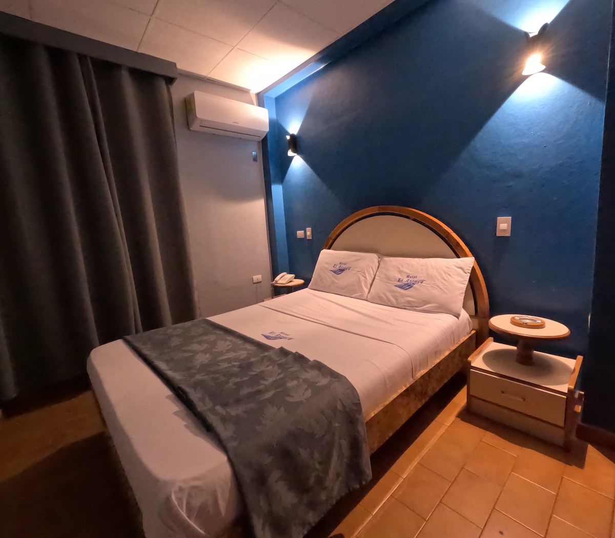 La Habitación Matrimonial Plus del Hotel El Arroyo ha sido recientemente remodeladas para brindar un ambiente cómodo y acogedor. Esta habitación esta diseñada para dos personas, y esta equipada con sabanas, baño privado con toallas suaves, jabón de ducha, shampoo, aire acondicionado split, SMART TV 32" y WIFI gratuito.