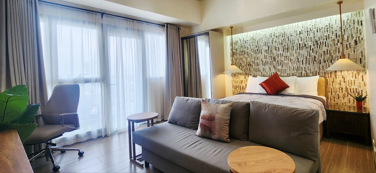 LuxeStaysMnl: elegante loft urbano con cama y piscina de 400 Mbps