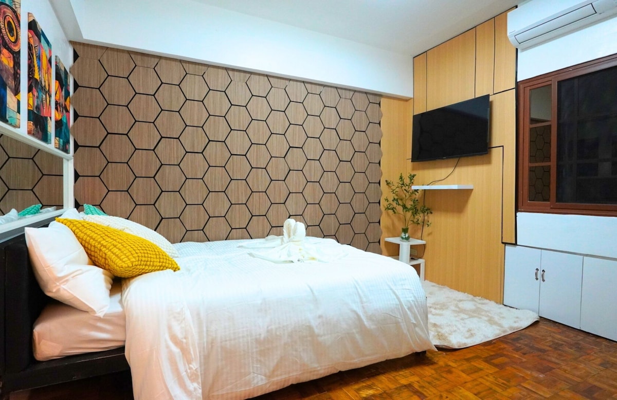 Todo lo que deseas explorar está justo afuera de las puertas de este lugar. La combinación perfecta de natación y relajación. Vistas a la ciudad de NCR, acceso gratuito a la piscina, jardín, sauna y gimnasio. Accesible a la iglesia, centros comerciales, tiendas y cajeros automáticos. La habitación tiene Smart TV, Netflix, Youtube, wifi y aire acondicionado.