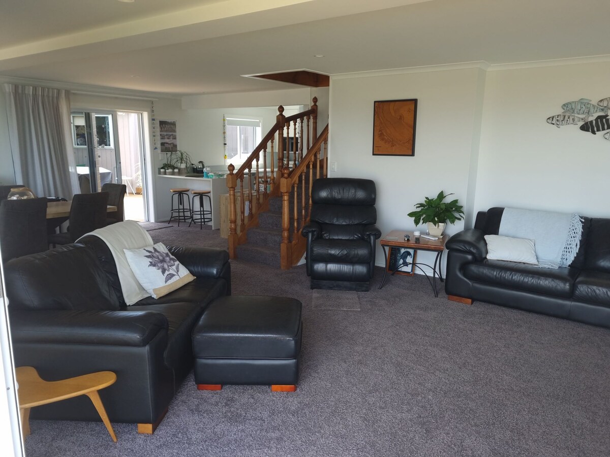 Justo encima de la playa, la terraza privada tiene vistas al interminable océano Pacífico. ¡Del amanecer al atardecer!🌅 Una hermosa playa larga de arena blanca, perfecta para largos paseos, nadar, remar o tomar una tabla de boogie Reúne conchas, atrapa un pez o cava tuatua 's , todo a la vuelta de la esquina El interior es acogedor y está bien abastecido Relajación instantánea: mucha sol y cómodos sofás, aire acondicionado disponible. Siéntate y disfruta de la vista con el sonido tranquilo de las olas