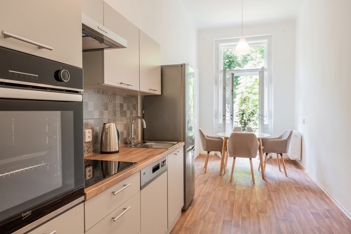 Un antídoto para las insípidas habitaciones de hotel :) Mi apartamento está en el primer piso de un edificio de apartamentos histórico y sus características originales, como techos altos y suelos de parqué, conservan la grandeza de las residencias de Praga de principios del siglo XX. Características: - Cocina (y Nespresso). - Baño, ducha, lavadora, cama de 200 x 160 cm. El barrio conserva el encanto «local», viajar al centro es fácil y hay una tienda vietnamita genial justo al lado.