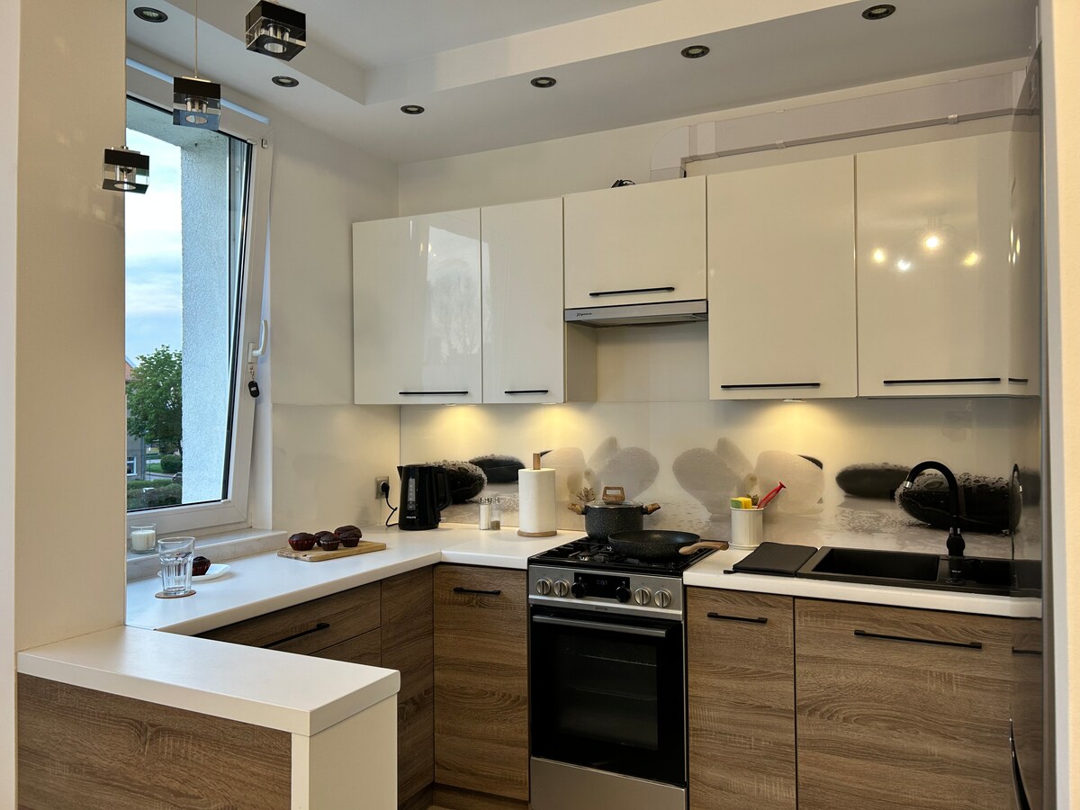 Zapraszamy Państwa do świeżo wyremontowanego mieszkania w samym centrum Malborka do dyspozycji jest przytulny salon z telewizorem oraz dwuosobową kanapą w pełni wyposażoną kuchnią. Sypialnia z wygodnym łóżkiem. Łazienka z kabiną prysznicową. Z naszego apartamentu do Zamku jest ok. 800 m, do ul. Tadeusza Kościuszki – 5minut pieszo. Wyposażenie Wyposażenie obejmuje ręczniki,pościel,lodówkę, mikrofale,telewizor, wi-fi, opiekacz. Główne atrakcje w pobliżu Zamek, Dino Park. Zapraszam rezerwacji.