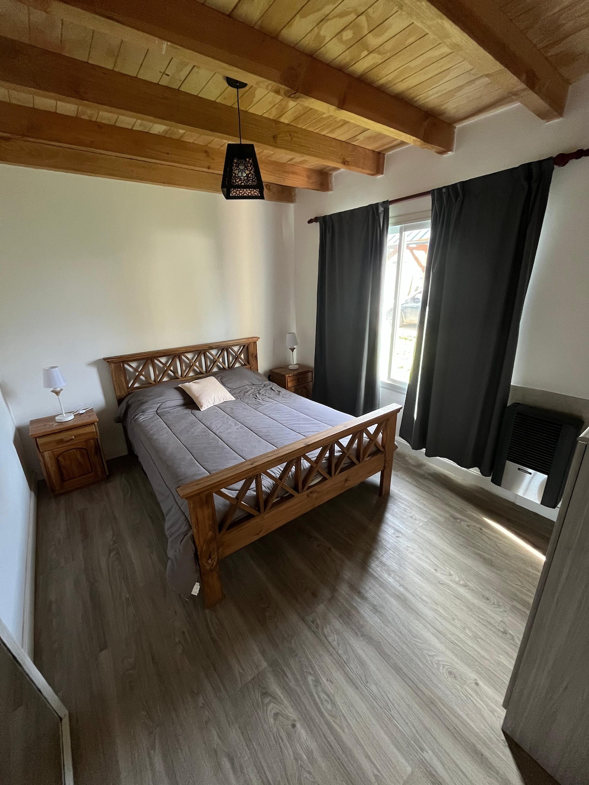 Este alojamiento nuevo, cálido y cómodo está ubicado en el corazón de El Bolsón. Ideal para 2 o 3 personas, cuenta con una habitación con cama matrimonial y un sofá cama en el living comedor. Dispone de kitchenette equipada con anafe, TV y baño completo. Ubicado a solo dos cuadras de la Plaza Pagano, epicentro de la feria regional y oferta gastronómica; y a media cuadra de la Avenida San Martín, con acceso directo a los principales atractivos turísticos, medios de transporte y comercios.