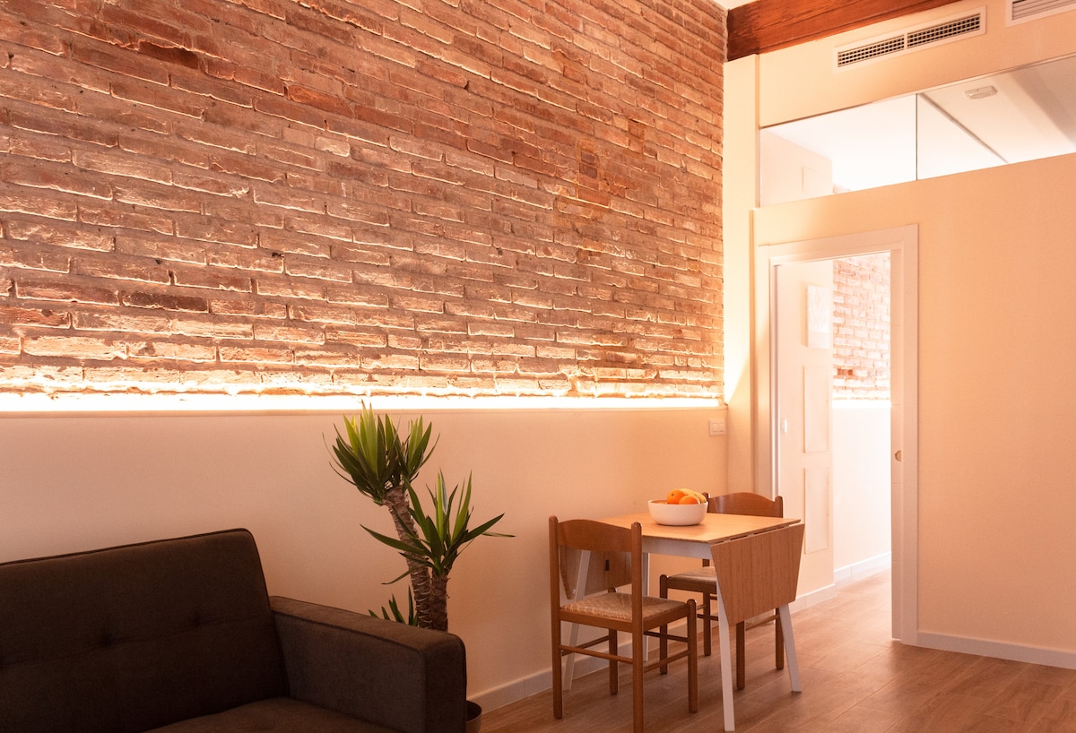 Feel real local non touristic atmosphere, 5 min walk to the beautiful beach. More than 100 year old, not large, typical valencian flat, fully renovated as an open loft located on the small, quiet renewed street. 100% safe, not a typical rich tourist area. Try great local bars by the corner and see the friendly local people singing and spending time outside with their family.