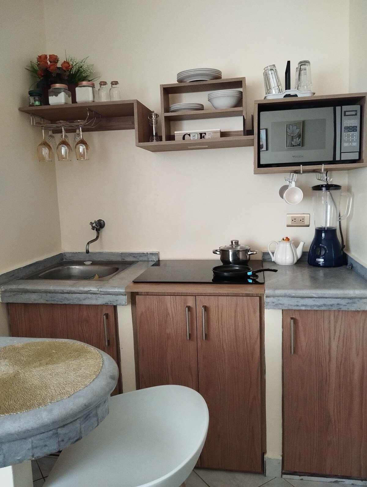 Relájate en este espacio tranquilo y elegante, donde te espera un departamento completo. Disfrutarás de numerosas comodidades, incluida una cocina completamente equipada con todos los utensilios necesarios para preparar exquisitos platos, así como una acogedora habitación con aire acondicionado para garantizar un descanso óptimo. Además, podrás deleitarte con un patio lleno de plantas, perfecto para disfrutar del aire libre y la serenidad que brinda la naturaleza