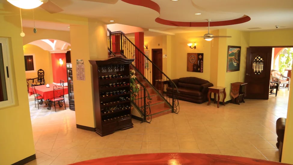 Alójate en un encantador hotel familiar en el tranquilo Reparto San Juan, Managua. Ubicado en una zona segura y transitable, a solo unos pasos del centro comercial Metrocentro, tiendas únicas en Los Robles, Corona Plaza, parques, restaurantes y bares en la Zona Hippos. Disfruta de un chapuzón en la piscina, amplias habitaciones con aire acondicionado y recepción 24 horas con personal multilingüe. Desayuno continental y café gratuitos disponibles.