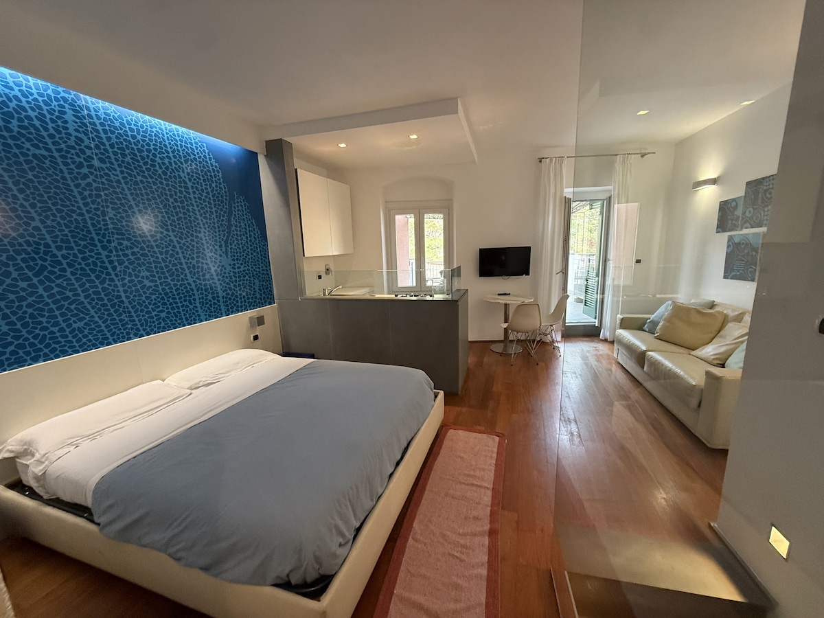 Acogedor estudio en San Bernardino, ubicado en las colinas de Cinque Terre con impresionantes vistas al mar sobre Corniglia y Manarola. Ideal para parejas o viajeros solitarios que buscan paz y naturaleza. Un pequeño jardín adyacente con limoneros y albaricoqueros se suma al encanto. Terraza privada, cocina americana, cama tamaño king, aire acondicionado, televisor inteligente y wifi. Perfecto para relajarse lejos de las multitudes.