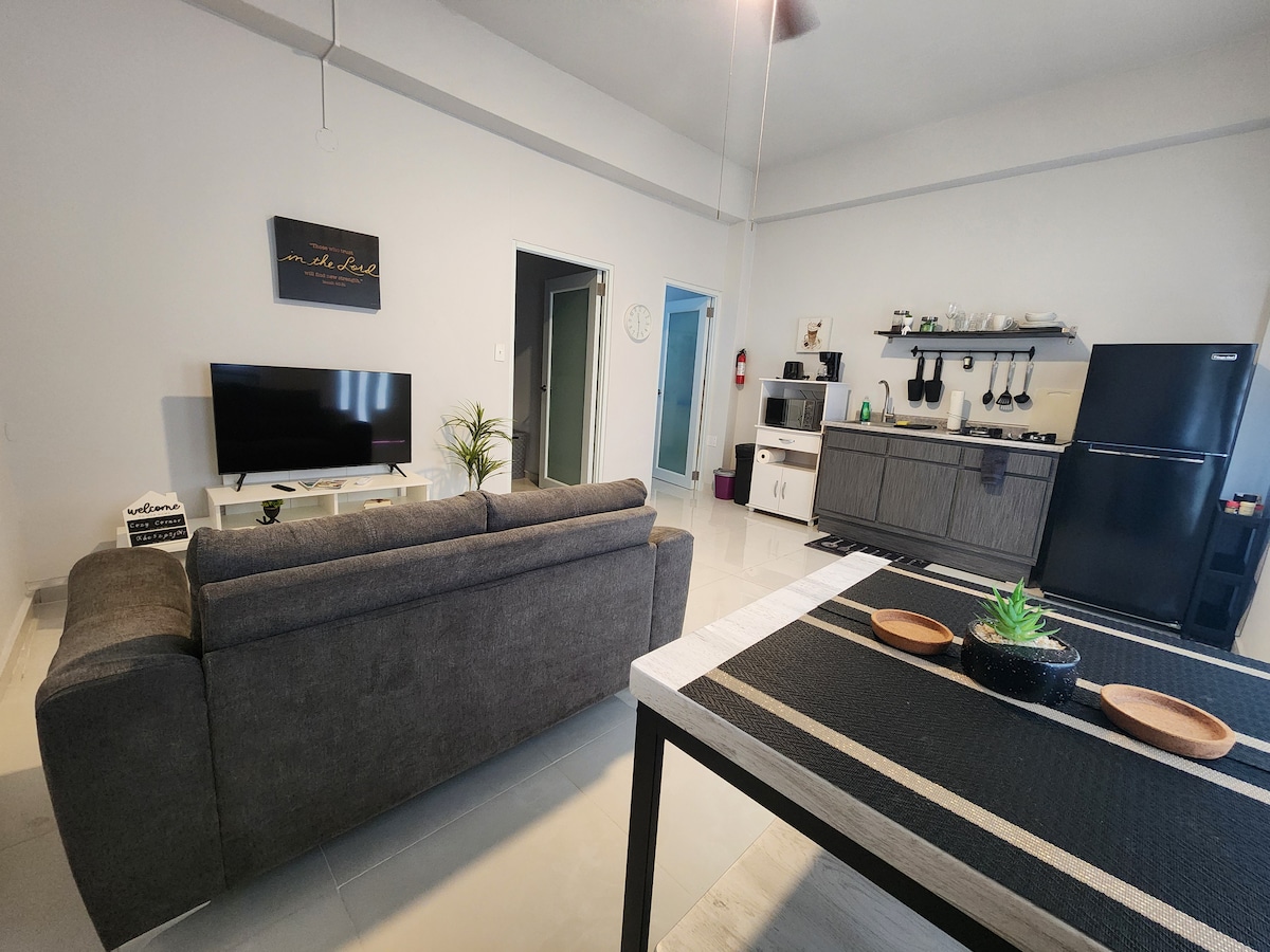 Este es un apartamento perfecto para una escapada con una ubicación céntrica. Esta cerca de las impresionantes playas del norte de la isla: Mar Chiquita, La Esperanza, Los Tubos en Manatí, y a 25 min. la playa Puerto Nuevo en Vega Baja. Cerca de Hospitales, Universidades, Supermercados, Farmacias, Malls, Casino y Rests. Perfecto para viaje de trabajo o trabajo a distancia. El apto. cuenta con una pequeña sala, comedor y cocina equipada, dormitorio, cama full, escritorio, WIFI, closet y baño.