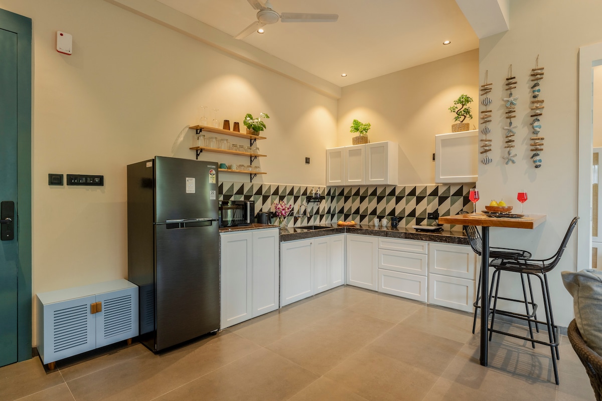 Casa De Goa 1BHK | Cerca de Thalassa | Piscina y gimnasio