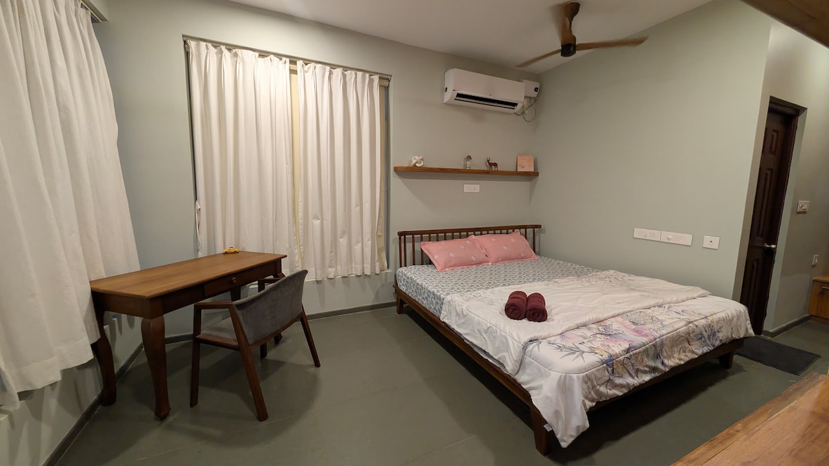 ALOJAMIENTO PREMIUM EN NAMMA MYSURU EN UN TERRENO DE 557 m²CASA DE 50 AÑOS REFORMADA EN EL CORAZÓN DE KALIDASA ROAD, MYSURU Capacidad para 8 adultos4 HABITACIONES Y 3 BAÑOS (DOS DE ELLOS CON AIRE ACONDICIONADO), AMPLIO JARDÍN, ZONA DE FIESTAS, CÉSPED Y TERRAZA GRANDE.Se pueden estacionar hasta 4 o 5 autos.Muy cerca de hoteles, cafeterías, licorerías, supermercados y cafeterías de lujo en Namma Mysuru.RESERVA NUESTRA VILLA Y HAZ QUE TU ESTADÍA SEA INOLVIDABLE 😊