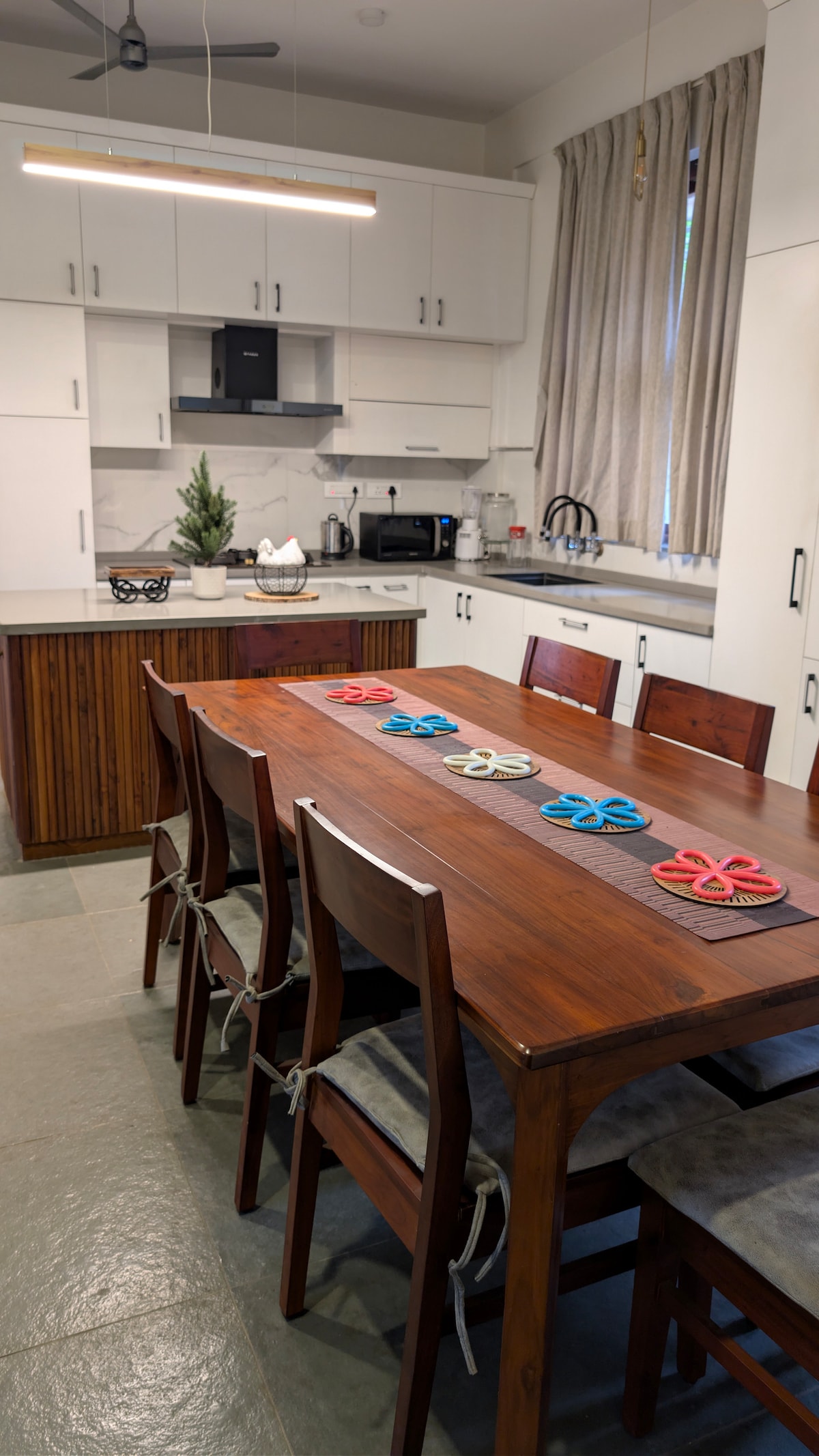 Adhyaya – Heritage Reverbed es una villa temática de 3500 pies cuadrados en Mysore, diseñada como un hogar lejos de casa para familias y grupos muy unidos. Con 4 elegantes dormitorios, amplias salas de estar, una cocina totalmente equipada y un balcón abierto con encanto de terraza, combina la elegancia del viejo mundo con comodidades modernas como el entretenimiento Ott. Idealmente ubicado a pocos minutos de las principales atracciones de Mysore, es perfecto para un máximo de 12 adultos y 4 niños.