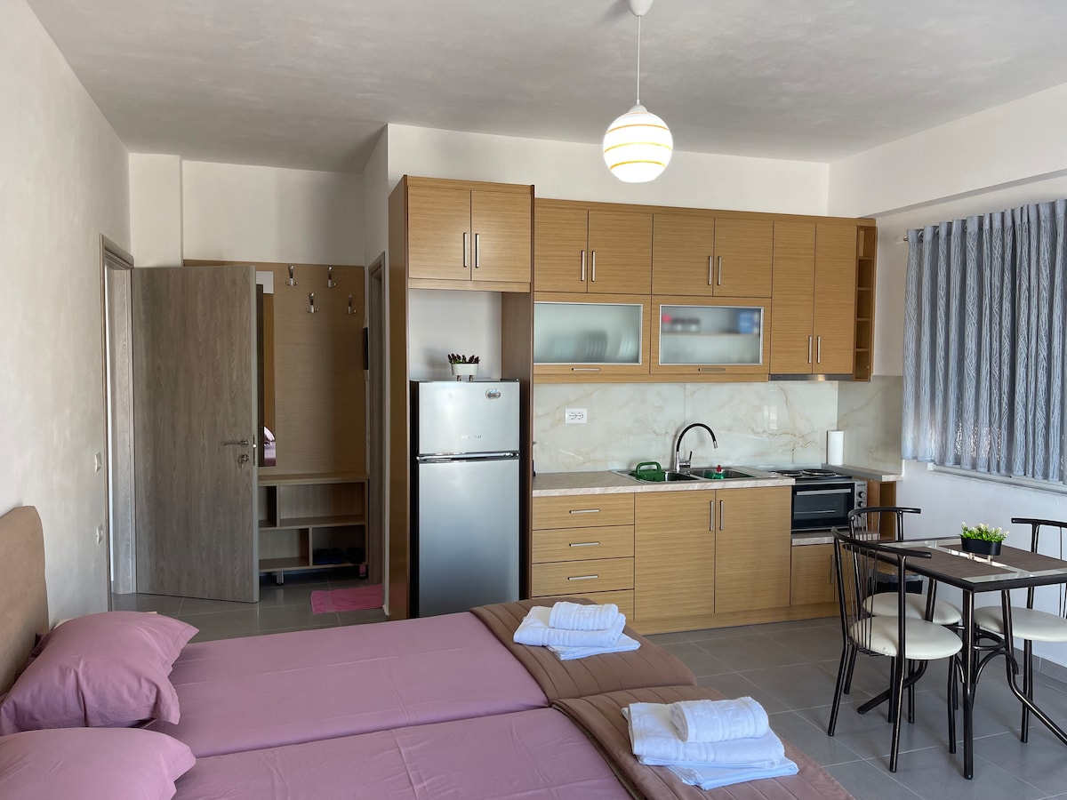 Un encantador apartamento recién reformado con capacidad para 3 personas situado cerca del puerto de la hermosa Saranda. El apartamento ofrece fácil acceso al centro de la ciudad, a 5 minutos a pie, a una distancia de 20 metros de algunas de las playas más conocidas de la ciudad y también de cajeros automáticos cercanos, oficinas de información turística y transporte público a algunos destinos imprescindibles mientras visitas Saranda, como Ksamil o el Parque Arqueológico de Butrint.