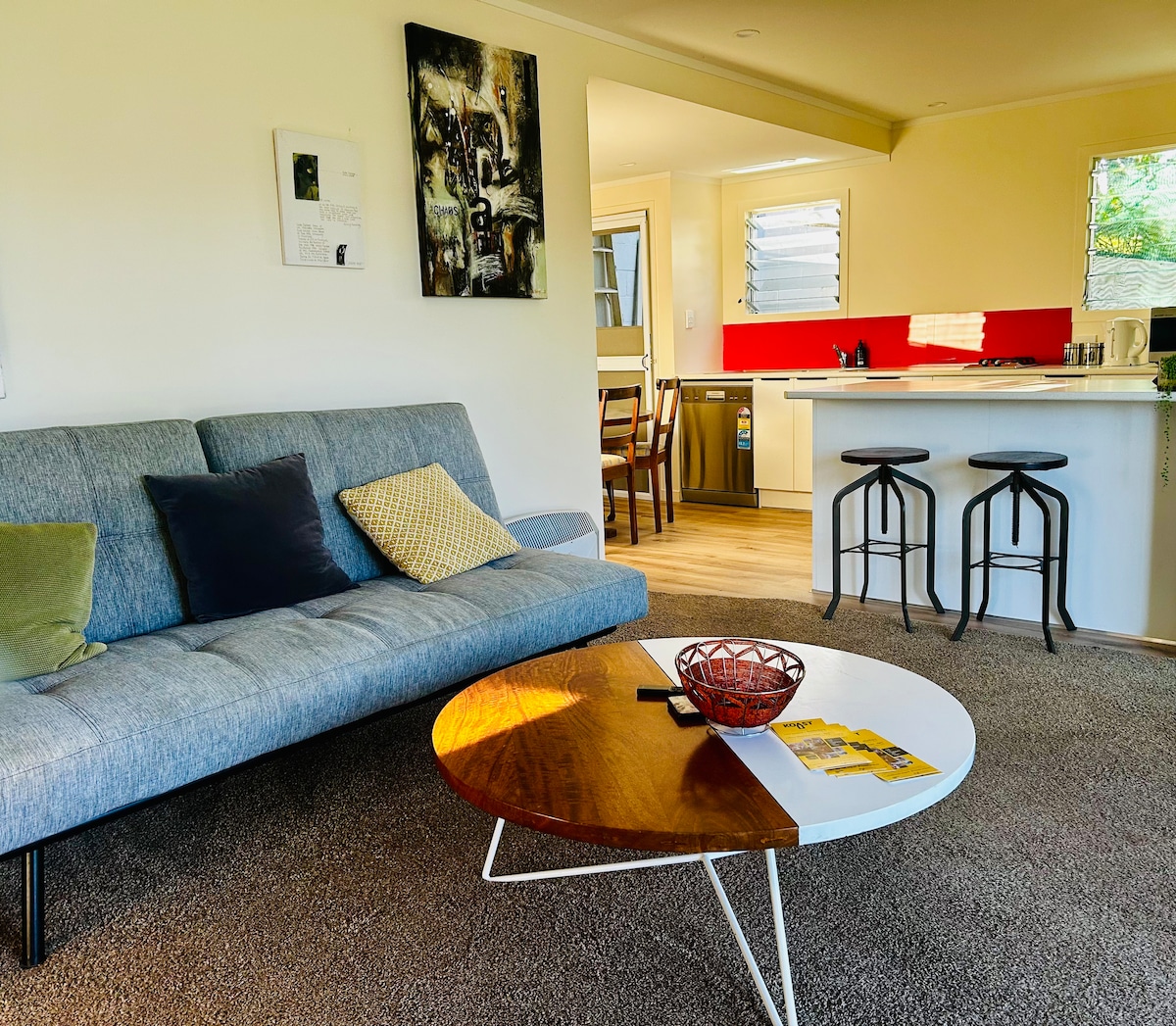 Studio 8 es un estudio privado con unas vistas impresionantes de las playas de arena color albaricoque y la laguna de la hermosa bahía de Cable. Relájate y desconecta mientras contemplas las vistas del mar a lo largo de la bahía hasta la península de KariKari. Ven a relajarte en nuestro estudio privado, adecuado para 1 persona o para una pareja. Hay más de 13 restaurantes a 5 minutos en coche. Un paseo privado hasta la playa. Además, ¡la mejor heladería está a poca distancia a pie! Ubicación perfecta para explorar el Lejano Norte.