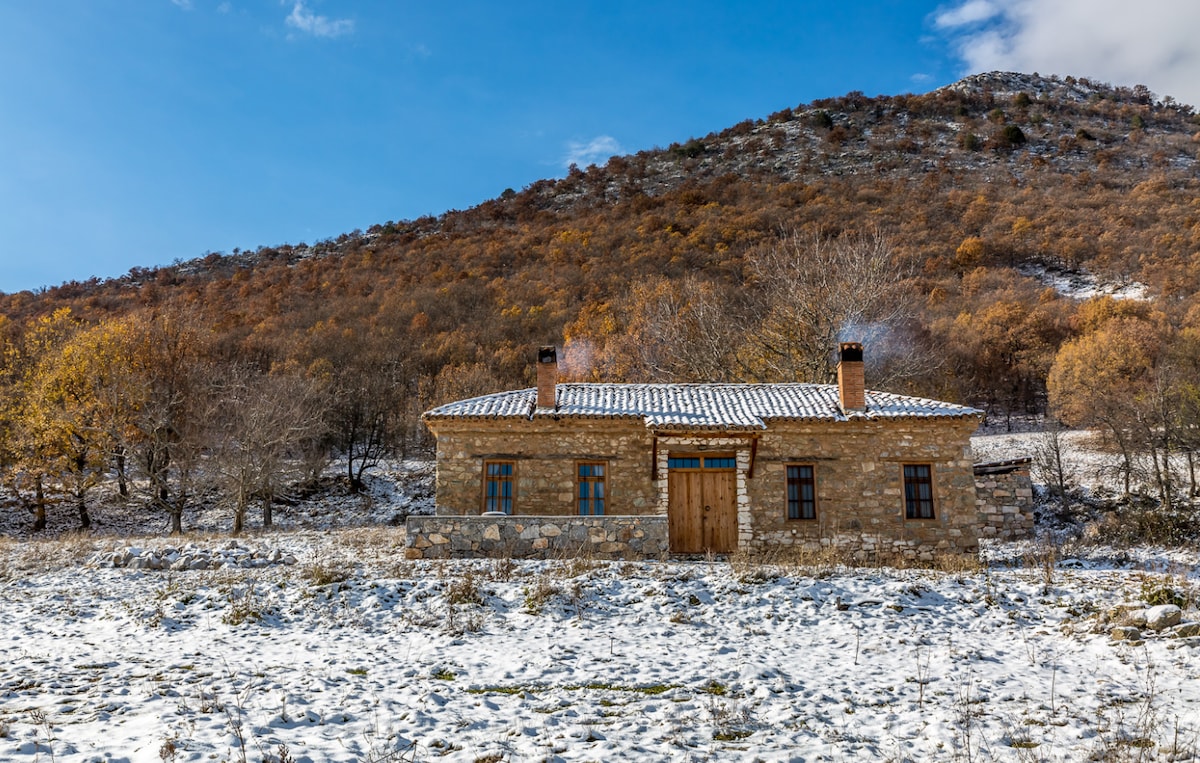 Enjoy the peace and quiet of this beautiful small stone house with fire place at the edge of the forest in the small village of Oxia, just 10 minutes walk from small Prespa lake. The house dates back to 1920 and has been fully renovated in 2014 with custom made design executed by local materials and artisans. The surroundings are quite rural with sheeps and horses at close distance. The lakes, a pristine bird sanctuary is one of the most beautiful and preserved landscapes in Europe.
