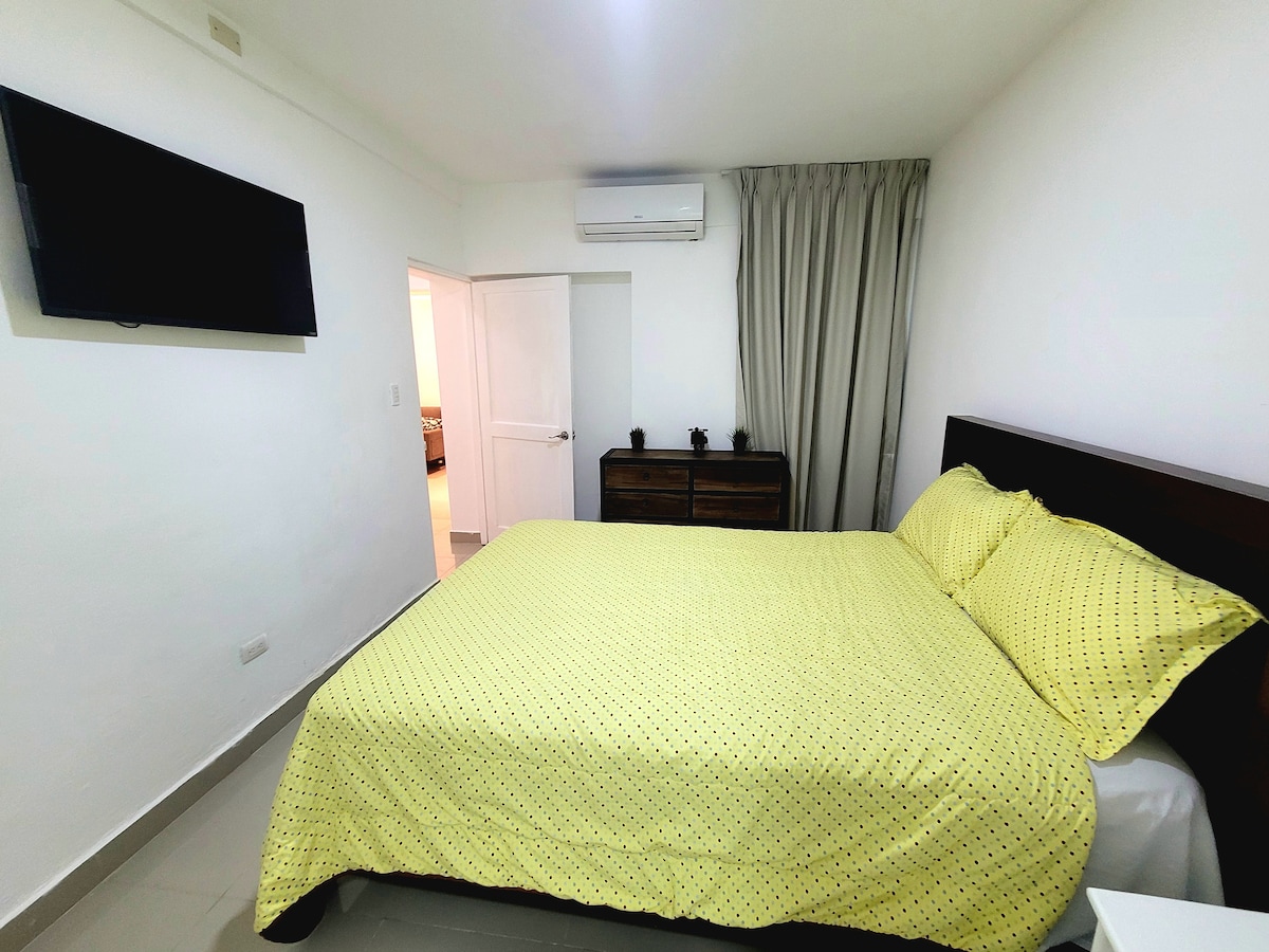 El apartamento es para 2 persona está en un segundo nivel ; es muy confortable , tiene espacios en el que encuentras armonía y tranquilidad. Tiene A/C en la habitación y en la sala . Dispone de una cama Queen y un sofa cama en la sala , tiene una terraza de 20m2 . El edificio tiene planta eléctricay ascensor . Un parqueo para carro o jeepeta. El edificio es cerrado con cámara y seguridad 24 horas .