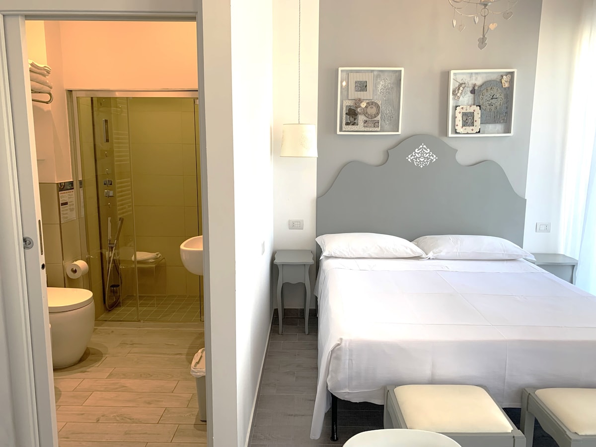 Suite Deluxe privada, ideal para negocios, familias y grupos pequeños, en el centro histórico de Rímini, a pocos pasos del Palacongressi, cerca de la estación (1 parada para la Feria) y el mar. Dos dormitorios dobles, cada uno con TV inteligente y escritorio, esquina de bar en la entrada, gran baño privado, lavandería y wifi gratuito ultra rápido. Cuna y trona bajo petición. ¡Estacionamientos y restaurantes cercanos! Acceso a la cocina y sala de estar en la zona de "Coliving"