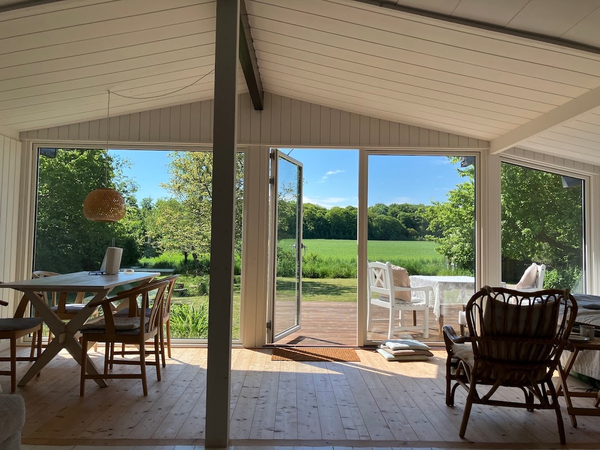 Møn. Una idílica casa danesa de entramado de madera en medio de los campos a 5 minutos a pie de la playa. Gran cocina/sala de estar luminosa y deliciosamente renovada y 3 dormitorios. Aseo y baño tanto en las casas principales como en un anexo separado. Gran jardín sin césped con árboles frutales, en plena naturaleza y con muchas oportunidades para experimentar la paz, la tranquilidad y las hermosas vistas.