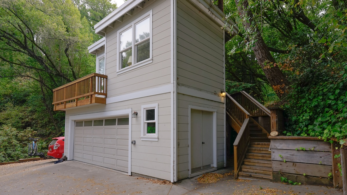 PLEASE BE SURE TO READ all of the INFORMATION LISTED BELOW regarding our listing PRIOR TO BOOKING, including "Your Property" and "Other Details." We have a large, lower unit, private studio with a separate entrance, washer/dryer, and private outdoor space. It is quiet amongst the Redwoods, with ample on street parking and is very close to San Francisco, Muir Woods, Stinson Beach, downtown Mill Valley, Golden Gate National Recreation Area, Sausalito, Tiburon, bike paths and mountain bike trails.