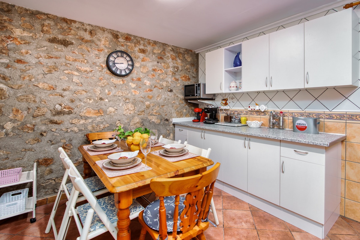 Preciosa casa rústica de 2 dormitorios en el casco antiguo de Finestrat. Vivienda muy peculiar de paredes onduladas y encaladas de blanco que le dan un aspecto de casa cueva, con las comodidades de una casa modena . Su ubicación (6km de la playa y 800m del Puig Campana) permite combinar actividades de playa y montaña. Además cuenta con la piscina municipal a 100m de la casa y parking privado. Por sus peculiaridades El Capricho no se recomienda a personas con movilidad reducida y niños <4 años.