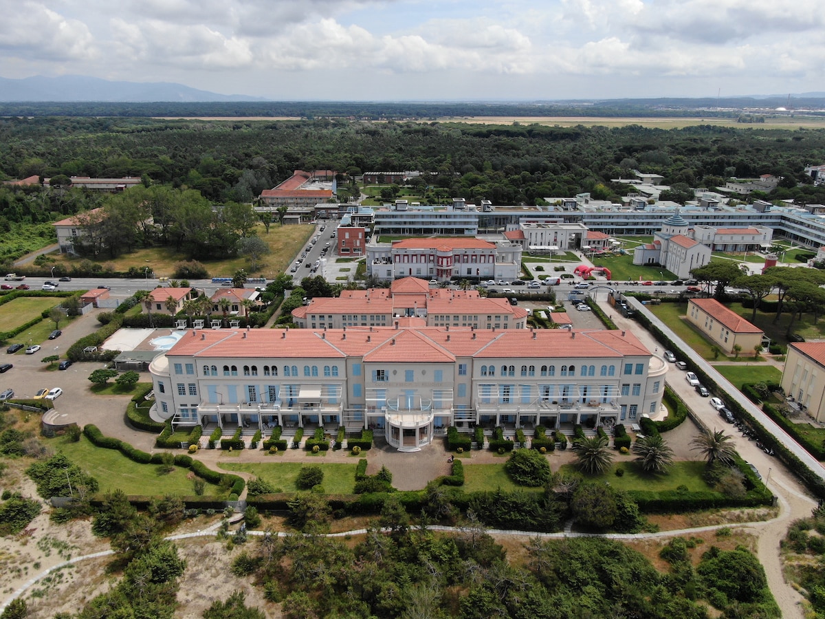 Frente al mar en Tirrenia, en el centro. Combina la relajación del mar con la proximidad a las ciudades artísticas más bellas de la Toscana. Al otro lado de la calle se accede al mar desde Bagno Siria. Pisa y el aeropuerto están a 15 minutos en coche y en la carretera se encuentra la basílica románica de S. Piero a Grado. Livorno está a 15 minutos en coche. Siena, Lucca y Florencia son destinos de un día. El Instituto Stella Maris está a 5 minutos en coche. Ideal para familias con niños, pero también para trabajar a distancia, gracias a la rápida conexión wifi.