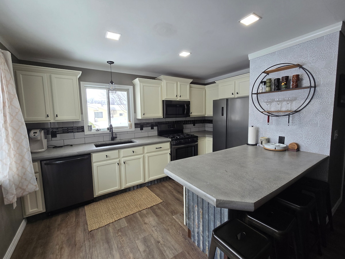 Relax with the whole family at this peaceful place to stay. Minutes away from both Higgins & Houghton Lake. See bright stars while having a campfire. 3 miles to South State Park at Higgins, half mile to "The Barn" wedding venue, and 6 miles to ORV trail head. Close to Multiple Golf courses. The house is recently updated with all new furnishings. 2 bedrooms, 1 with 2 bunkbeds and other is King Bed. Everyday utensils, Board games, tv and laundry. Can't wait to have you visit our special place!