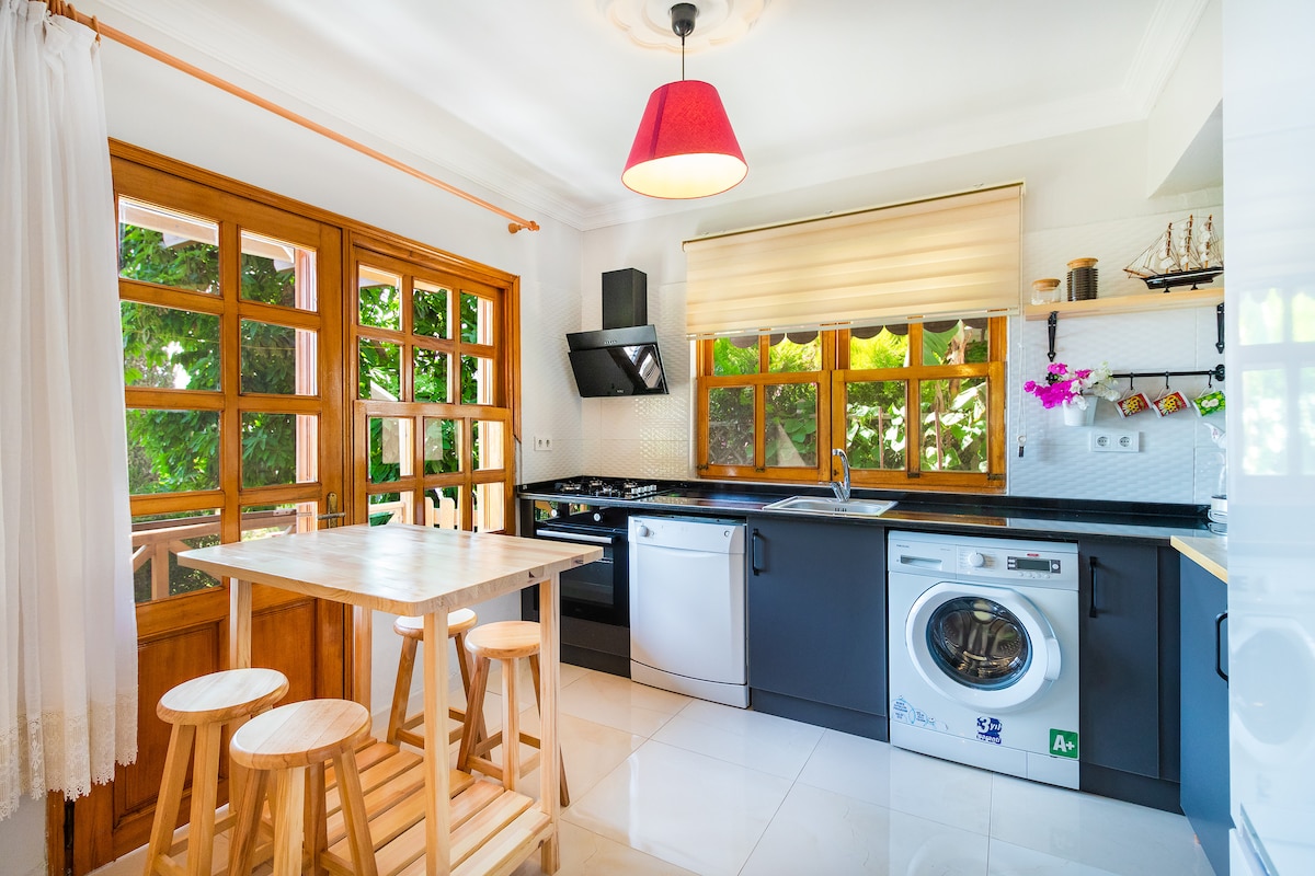 Garden Suite misafirlerimizin konforu için tamamen YENİLENDİ ! Giriş katında yer alan Garden Suite, mis kokulu limon, portakal ve avokado ağaçlarının bulunduğu bahçenin içerisinde yer almaktadır. 100 m2 alana sahip evimizin 2 ayrı yatak odası ve kendilerine ait banyoları bulunmaktadır. Bu sene yenilenmiş modern bir açık mutfağa ve ihtiyacınız olan tüm mutfak ekipmanlarına sahiptir.Masmavi denize, evimizin yan tarafında bulunan patika yolu takip ederek sadece 5 dakikada ulaşabilirsiniz.