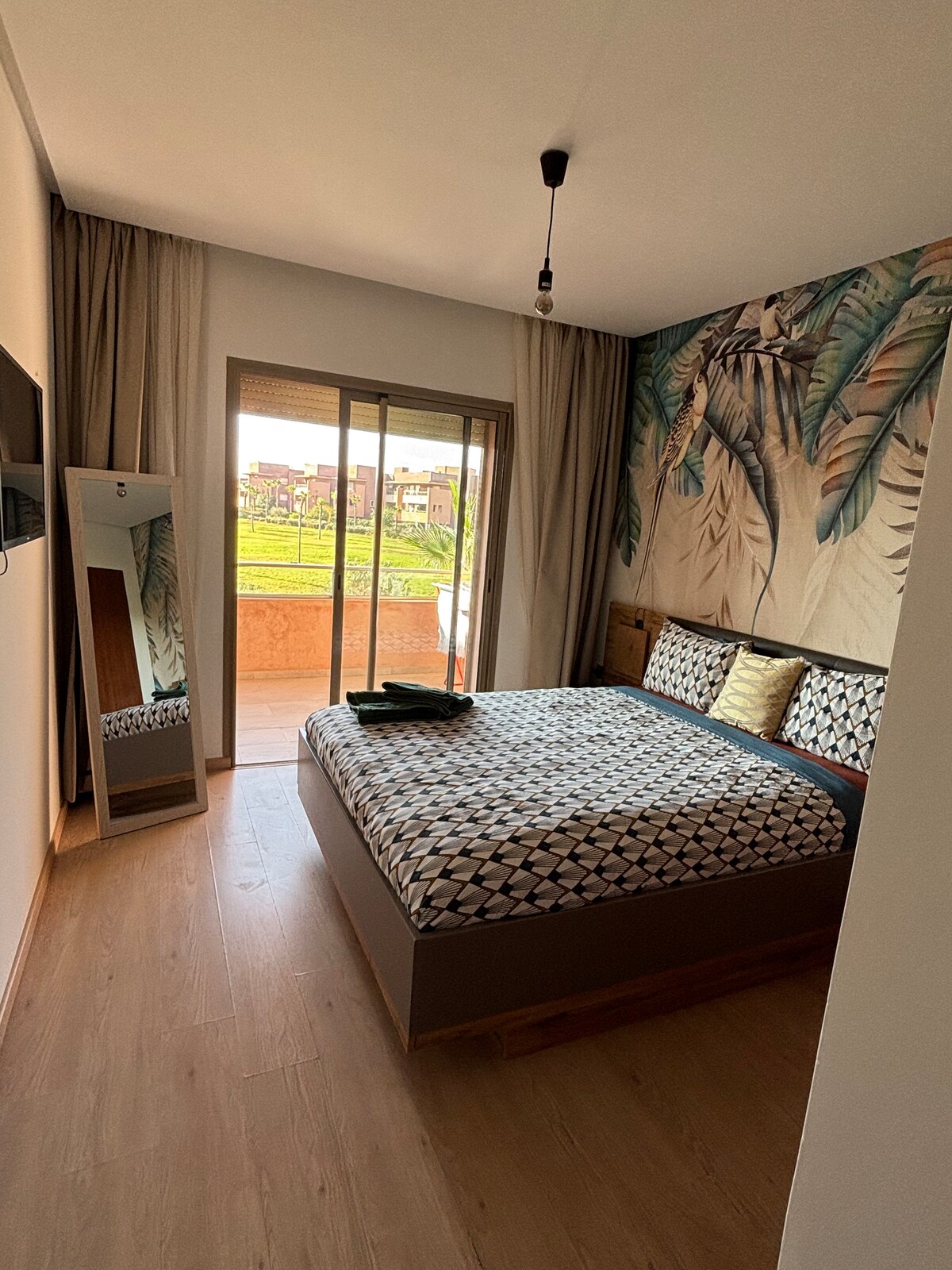 Bienvenue dans l’appartement cosy & moderne dans la Résidence Prestigia Jade. Conçu pour répondre à ceux qui voyage pour affaires, en famille ou entre amis - 2 chambres, 2 salles de bain - Salon & salle à manger - TV, WIFI: Netflix, Amazon Prime & Disney+ - Cuisine équipée - Terrasse vue golf 1 min à pied du restaurant du golf 10 min en voiture: - L’aéroport, du centre commercial Ménara Mall et Mazar et du quartier Hivernage 15 min en voiture de la Place Jemaa elFna et quartier de Guéliz