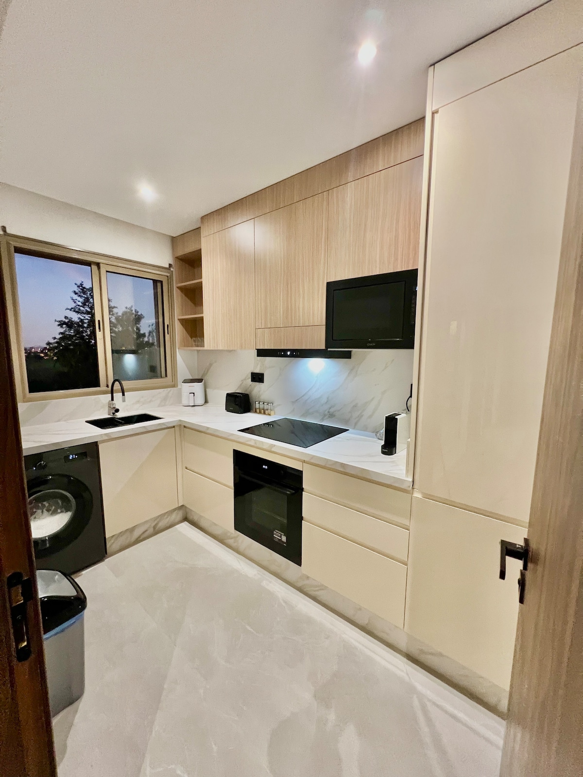 Disfrute de la comodidad de este magnífico apartamento, en el corazón de Marrakech en el barrio de invierno. Diseño, confort y ultrafuncional, con además una piscina en la azotea, para una experiencia única lejos de su vida diaria. Este apartamento es el lugar tranquilo y agradable perfecto para sus vacaciones en el corazón de Marrakech. Internet de fibra óptica de 100 megas PARA ALQUILAR CON LOS OJOS CERRADOS. Nota: las parejas marroquíes o mixtas deberán presentar el CERTIFICADO DE MATRIMONIO A SU LLEGADA