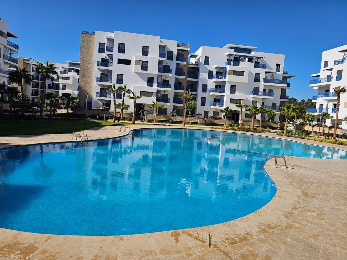 Offrez-vous un séjour détente dans cet appartement moderne situé au cœur d’une résidence balnéaire haut de gamme, à seulement 5 minutes de la plage. - 🏖️ Localisation idéale : plage accessible à pied, à proximité des restaurants et cafés - 🏡 Résidence sécurisée avec grande piscine, jardin paysager et parc de jeux pour enfants - 🛋️ Appartement lumineux, climatisé, tout équipé - 🌿 Terrasse privée et balcon pour profiter du plein air en toute tranquillité - 🅿️ Parking privé gratuit