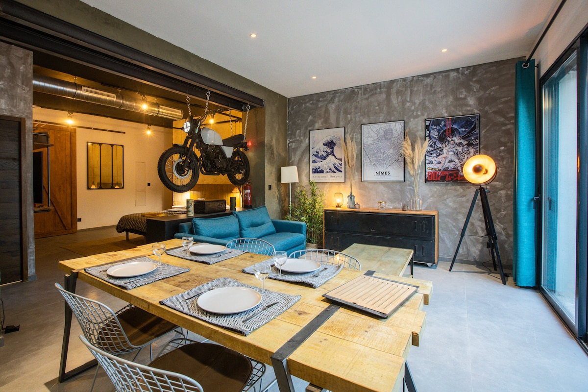 El Pavillon es un alojamiento hermoso y cómodo en el corazón de Nimes. - Edificio histórico clasificado del siglo XVII - Muy bien ubicado: cerca de atracciones locales y transporte público: a 30 metros de Arenas, a 5 minutos de la estación de tren, acceso gratuito al aparcamiento subterráneo de Arenas - Seguro y relajante en un entorno tranquilo con ropa de cama cómoda. - Relajante e íntimo con su jardín y azotea privada. - Cómodo y acogedor con equipo de alta gama, aire acondicionado y decoración refinada.