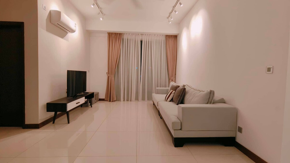 Situado en Taman Sentosa, con fácil acceso al centro comercial Midvalley Southkey y a la ciudad de JB. Unidad de 4 dormitorios con camas tamaño queen premium (colchón King Koil) con capacidad para 9 personas. Rodeado de centros comerciales y una amplia variedad de sabrosa comida local: - A 2 minutos de Hai Kah Lang. 海脚人 - A 5 minutos del centro comercial Mid Valley Southkey. - A 7 minutos del centro comercial KSL City. - A 10 minutos del centro comercial City Square. - A 12 minutos de JB Sentral. Disfruta de la película con nuestro televisor inteligente de 65 pulgadas equipado con caja de TV (no se proporciona acceso a Netflix). Aparcamiento gratuito para 4-5 coches.