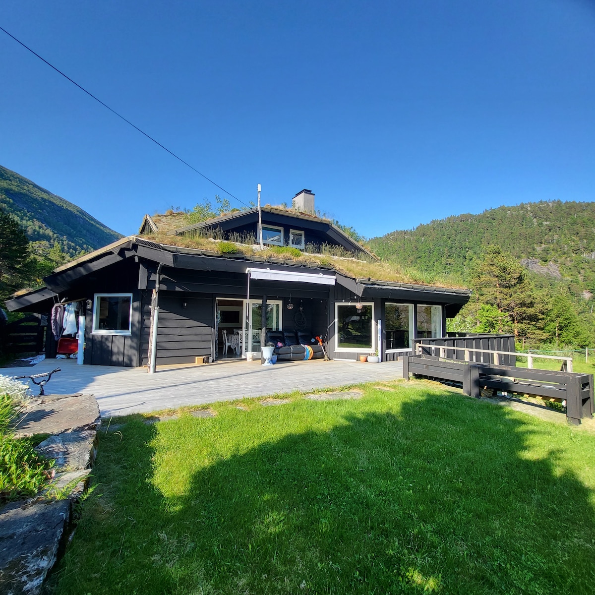 Situado en medio de Bergen y Førde. ¡Casa espaciosa de 2011 con maravillosas vistas en todas direcciones, sol desde la mañana hasta la noche, tranquila y apta para niños! ¡Los huéspedes señalan que en realidad es mucho más encantador que en las fotos! ¡Cerca inmediata del fiordo, las montañas y la vida silvestre! ¡Duerme bien para los trabajadores, ya que hay 5 dormitorios separados con camas muy buenas!