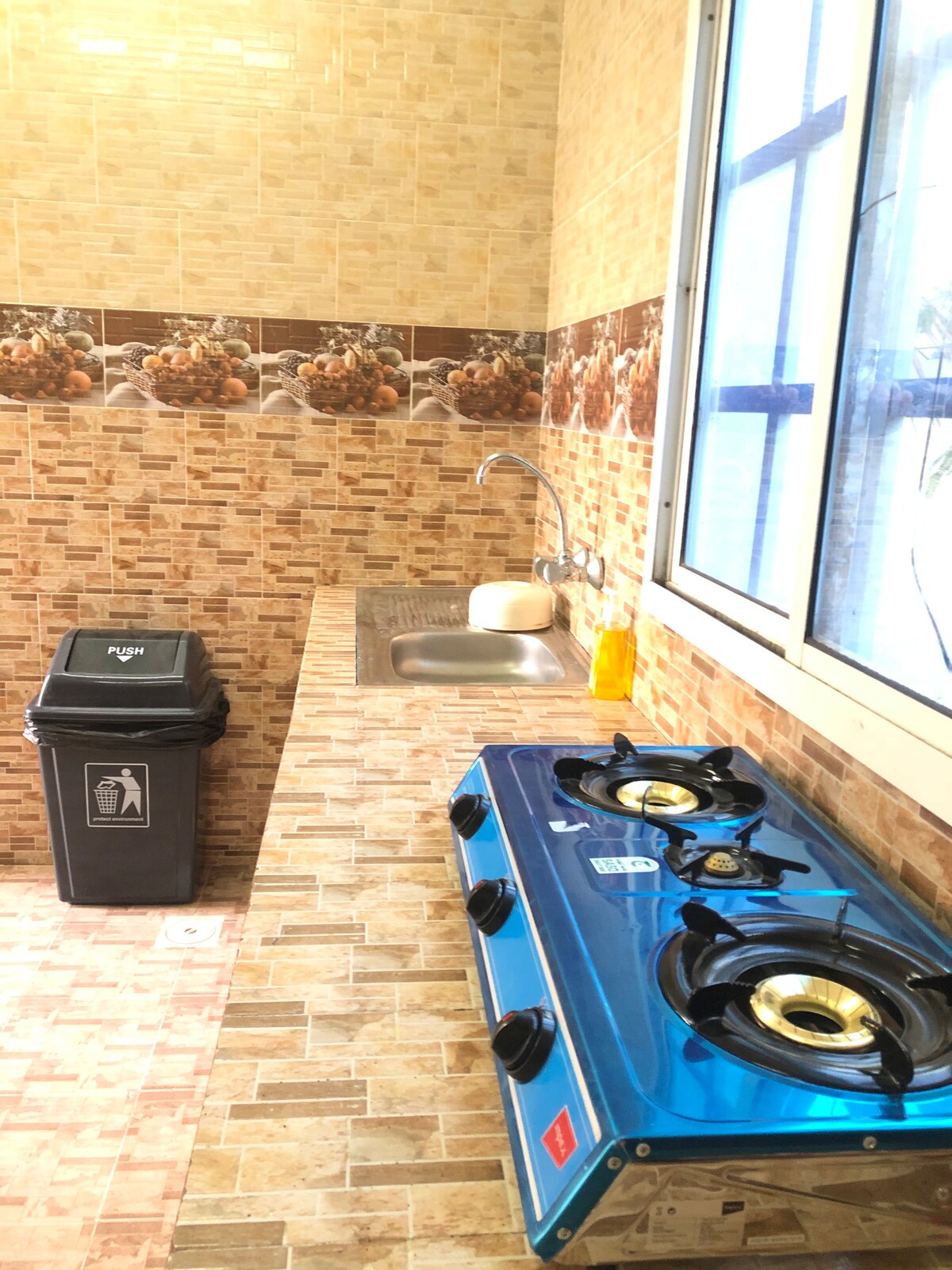 منزل مكون من صالة وغرفتين نوم وحمامين ومطبخ تحضيري وفناء خارجي كما يوجد بطانيات اضافية عدد2