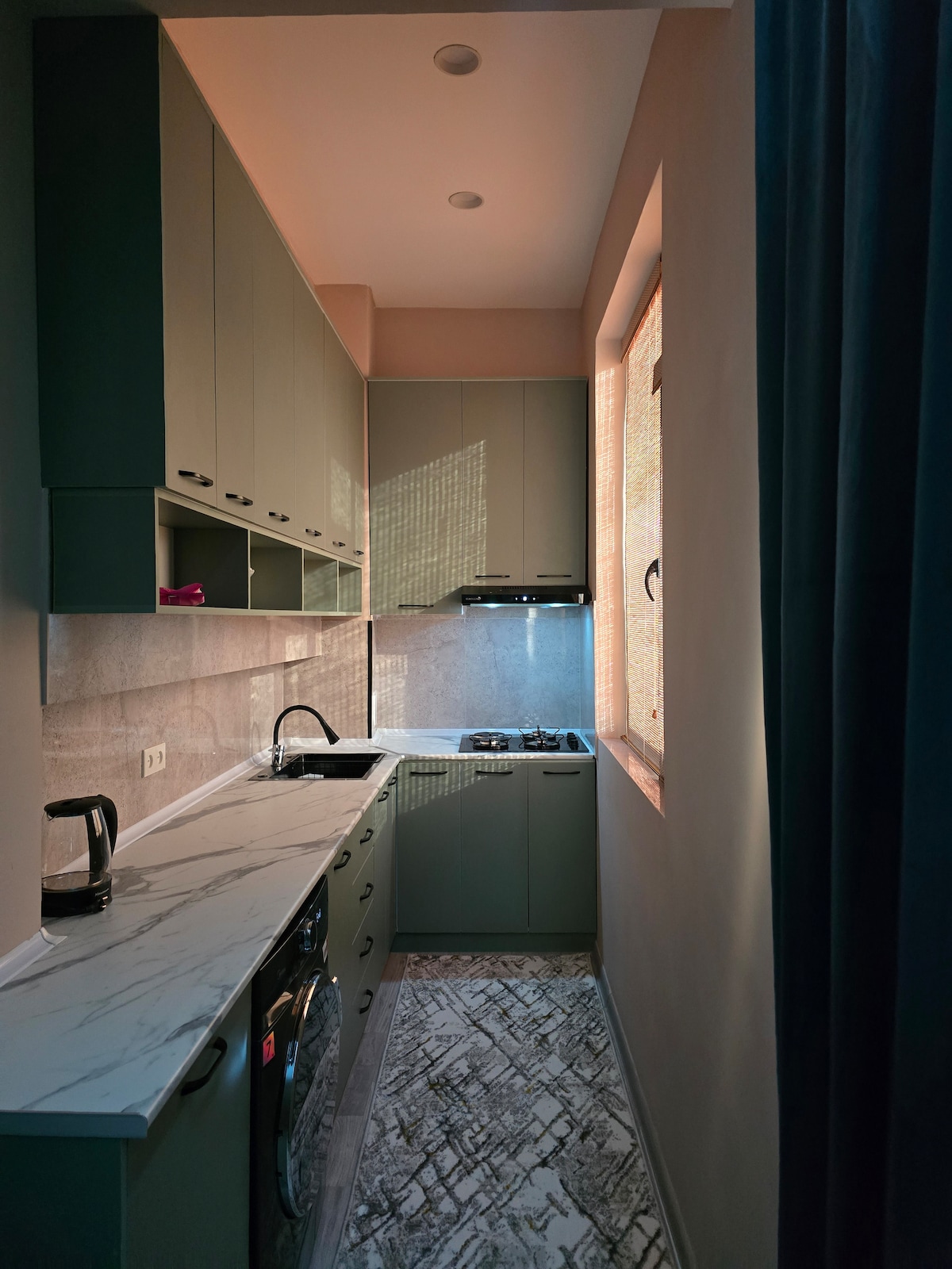 ¡Bienvenido a su tranquilo refugio en Khujand! Este apartamento de 3 habitaciones en la planta baja, recientemente reformado, es luminoso, espacioso y está diseñado para ofrecer comodidad. Situado en una zona tranquila y verde a solo 3 minutos de un supermercado. Tiene capacidad para 6 personas: 1 cama tamaño «king», 2 camas individuales y un sofá cama. Disfruta de una cocina totalmente equipada, un baño completo más un aseo separado, aparcamiento gratuito en el sitio y wifi de alta velocidad, aire acondicionado. Ideal para familias o grupos que buscan relajación y comodidad en el corazón de Khujand.